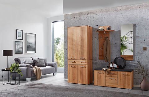 Und die Jacken? Ganz einfach einen Dielenschrank-Aufsatz für eine frei konfigurierte Kommode hinzunehmen.